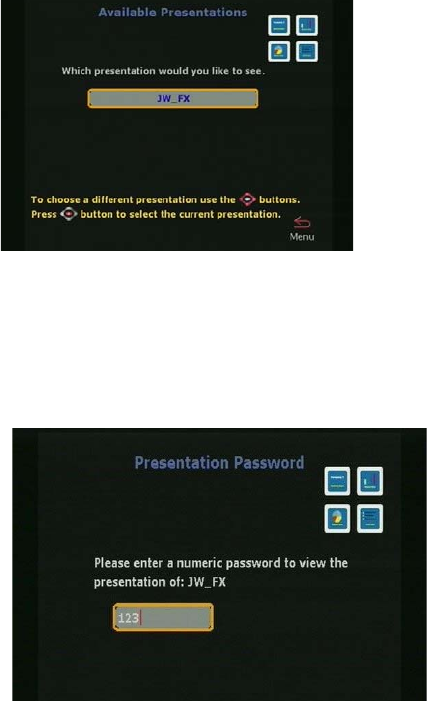 remote control to begin presenting. A presentation password